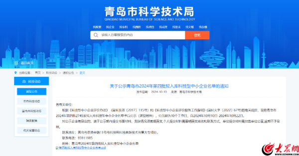 近日,青岛市科学技巧局对青岛市2024年第四批2745家拟入库科技型中小企业名单赐与公示,瑞源控股集团旗下青岛中康互联网医疗科技有限公司(以下简称“中康互联网医疗”)到手入选。