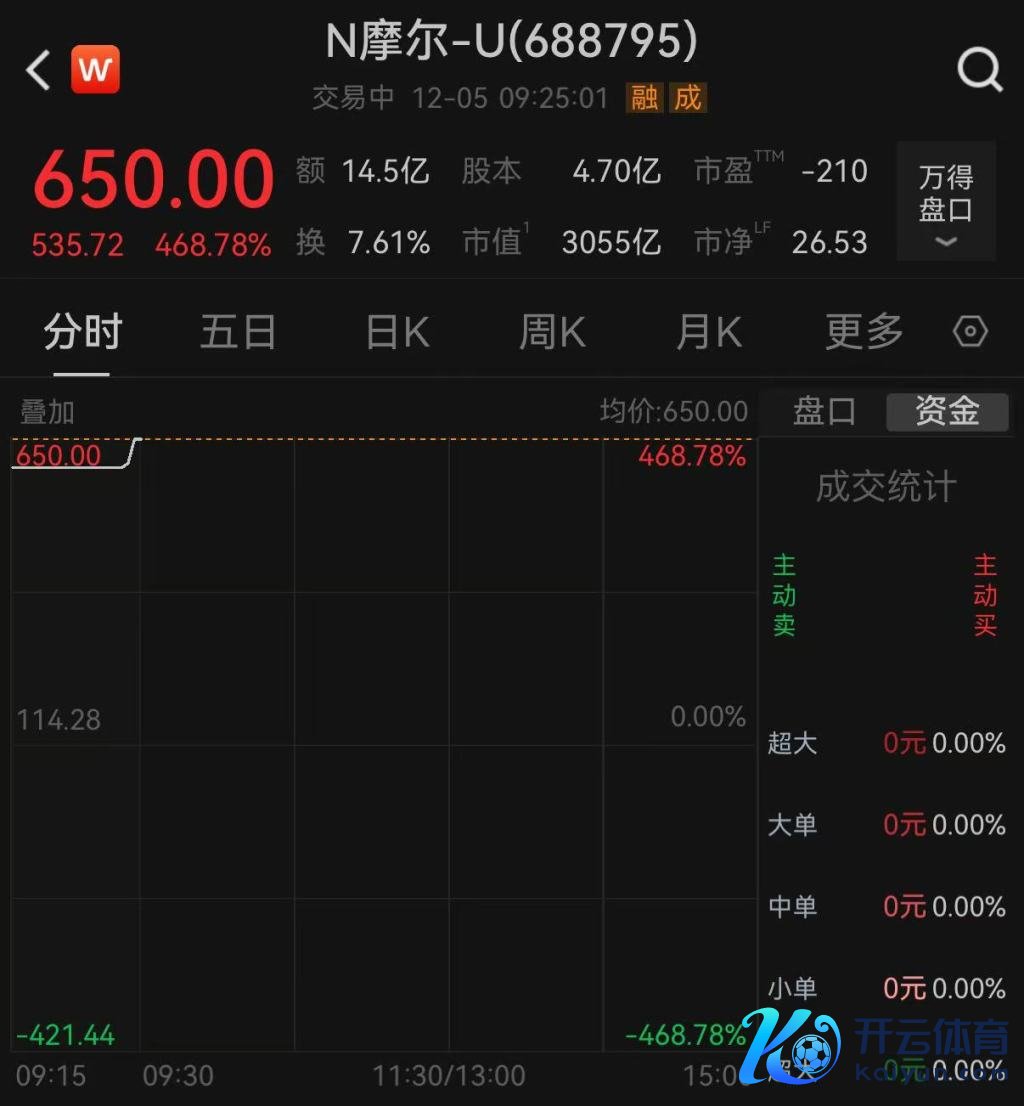 12月5日开yun体育网,被称为“国产GPU第一股”,科创板IPO从受理到过会耗时仅88天的摩尔线程(688795)登陆上交所科创板,开盘报650元/股,较刊行价114.28元/股飞腾468.78%,总市值冲破3000亿元,单签盈利高达26.786万元。