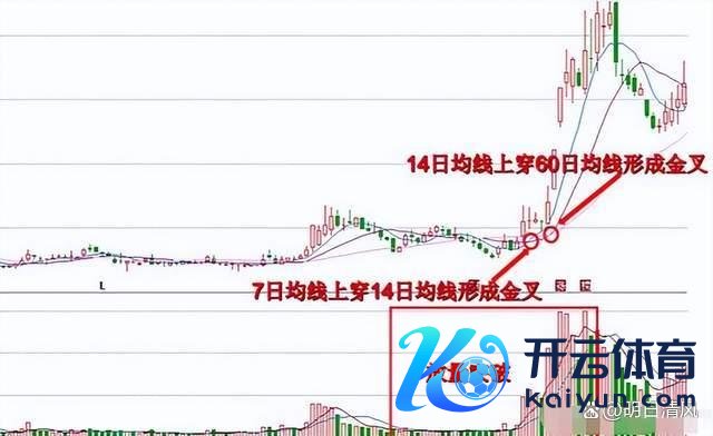 3、两个金叉。第一个金叉是7周线上穿14周线,第二个金叉是14周线上穿60周线。关联词这里咱们还不成算作一个买点,咱们需要进一步阐发,等于第二个金叉,14周线上穿60日周线。在三五周之内出现了两次金叉,这么的走势代表是强势股,后期有很大的可能主升浪升起。