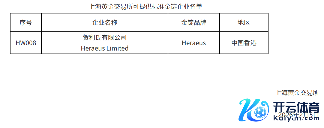 上海黄金来往所:新增贺利氏有限公司为境外可提供步调金锭企业上海黄金来往所:新增贺利氏有限公司为境外可提供步调金锭企业