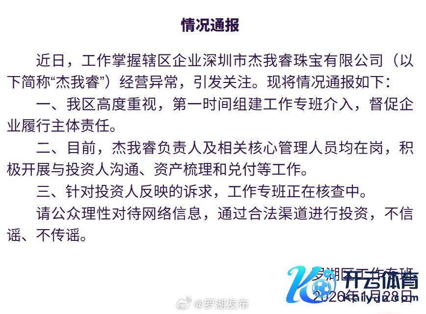 深圳一珠宝公司被曝见解相称?罗湖通报:使命专班正在核查中深圳一珠宝公司被曝见解相称?罗湖通报:使命专班正在核查中