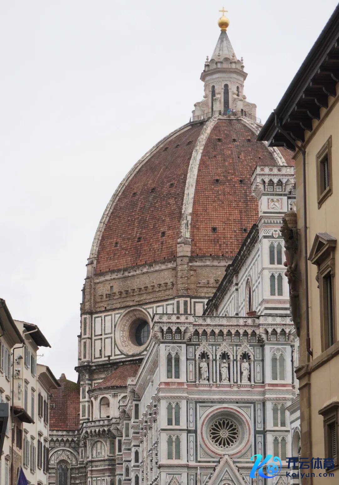 圣母百花大教堂:哥特式到文艺修起作风的过渡,阿诺尔福·迪·坎比奥和詹·皮耶罗·皮桑贪图的外立面庇荫精细,尖顶和高耸的拱顶具有典型的哥特式特质,布鲁内莱斯基的圆顶则是文艺修起建树作风的一个迫切标记。