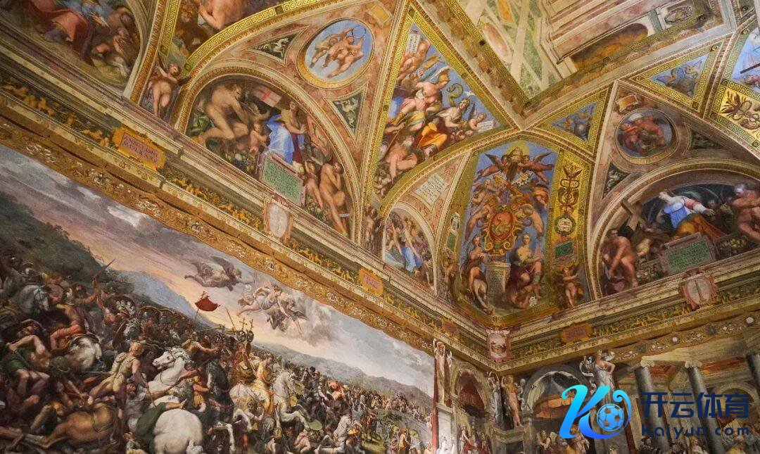 君士坦丁大厅:这里的壁画展现了君士坦丁的有关历史事件,如《君士坦丁的浸礼》描写了君士坦丁决定性的皈向时刻;《十字架的异象》展现君士坦丁在讲和前看见十字架异象;《米尔维安大桥之战》呈现了君士坦丁打败马克森提乌斯的时刻。