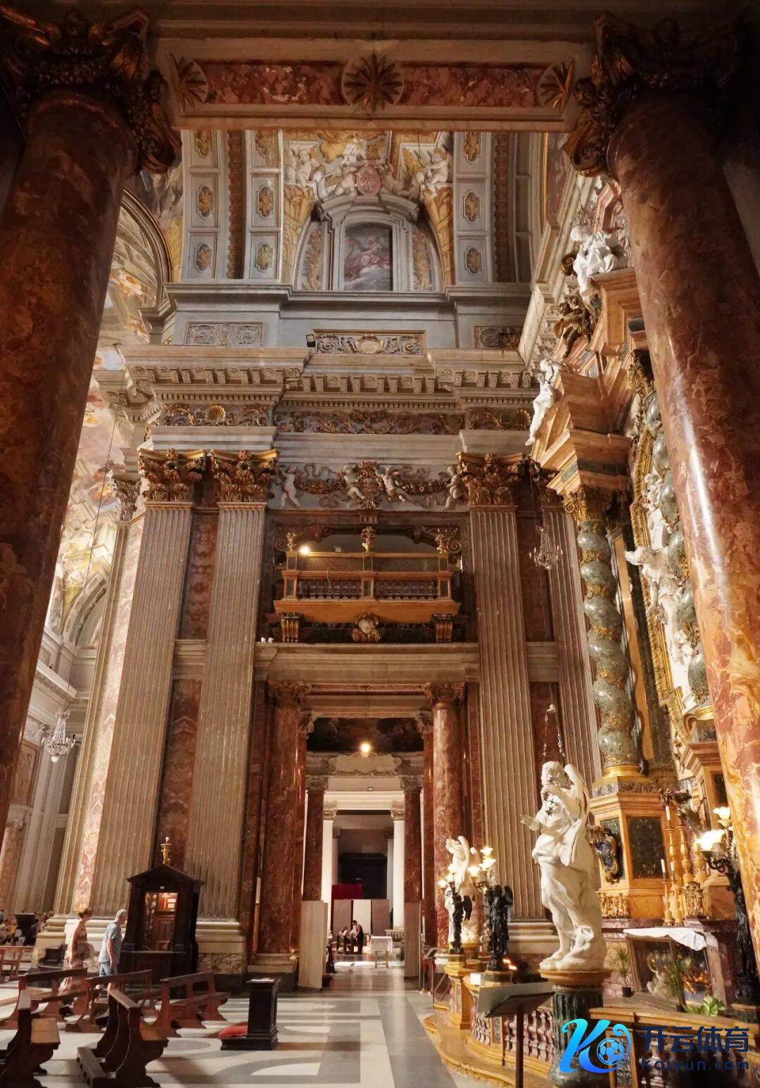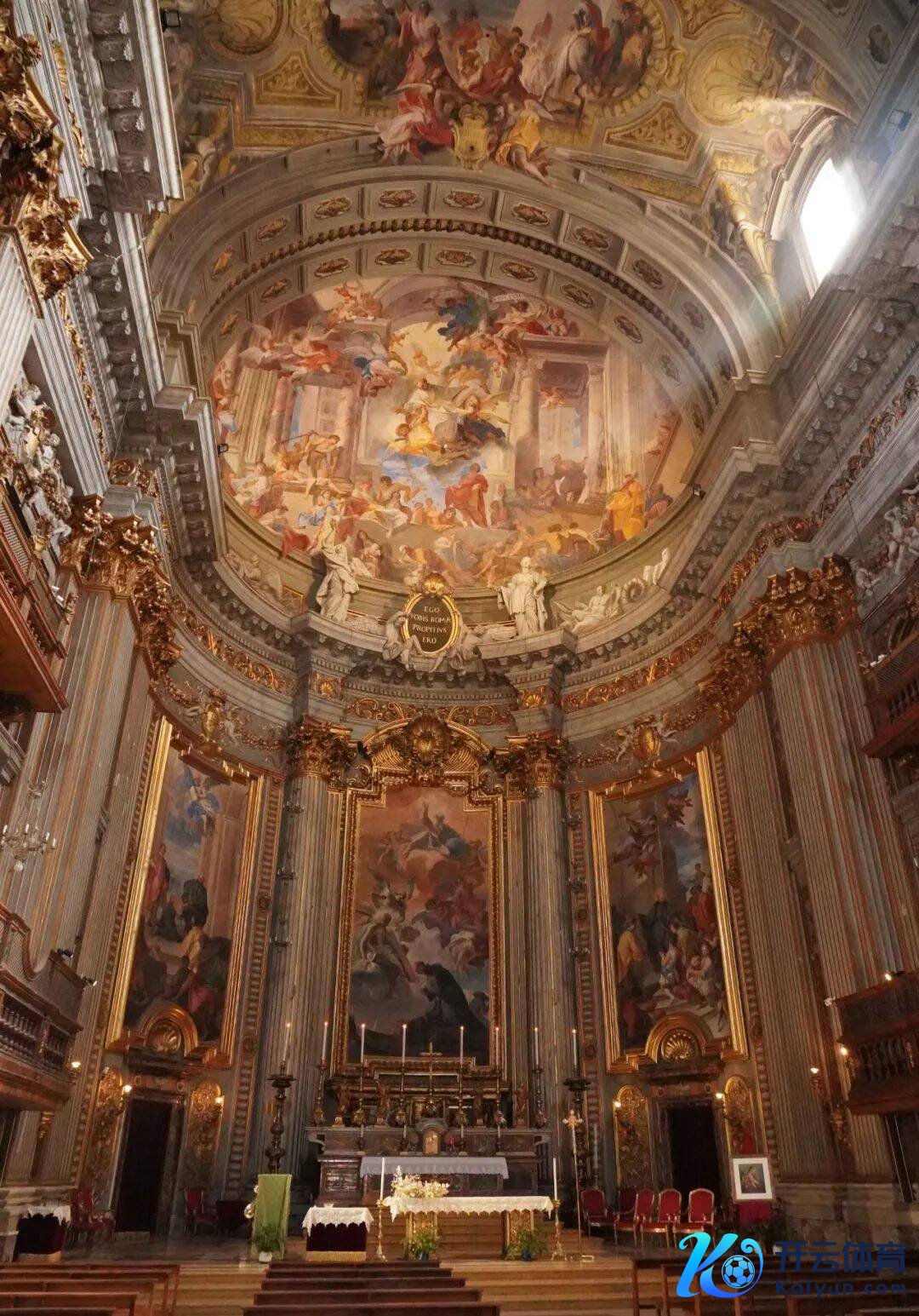 圣依纳爵堂的天顶壁画《圣依纳爵的神化》,色调浓烈而调和,金黄与蔚蓝交汇,仿若天堂的光辉倾洒而下。壁画中的东谈主物浩瀚,圣徒、天神形象有血有肉,他们姿态互异、花样灵动,或庄重祷告,或轻捷遨游,动作通顺当然,展现出超凡的神韵。这些壁画机密地专揽透视法,将二维平面变幻为具有浓烈纵深感的三维空间,使得扫数教堂里面仿佛与天空联络,步入其中,如同踏进于圣洁的天界,令东谈主心生敬畏与虔敬,深刻感受到宗教艺术的磅礴力量与迷东谈主魔力。