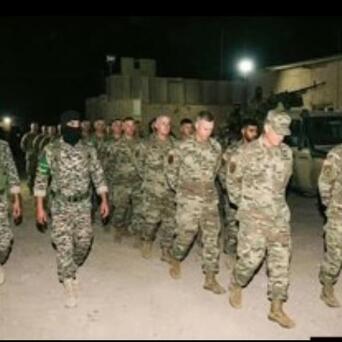 另一张像片显现,有20多名好意思军士兵分红两列纵队行进,边上是戴着头罩的士兵持枪照看,两名士兵手臂上头套着绿色的象征。
