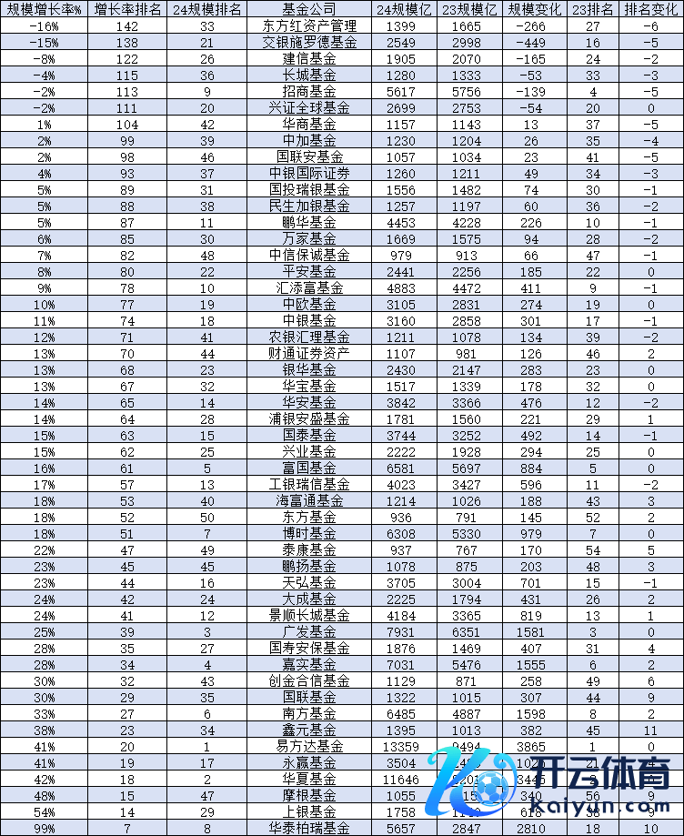 专题:聚焦2024年公募基金四季报 若何调仓换股?云开体育 近日,基金公司2024名次出炉,华商基金限度小幅增长,华商基金2024年末限度为1156.7254亿元,2023年末为1143.3191亿元,限度变化为13.4063亿元,限度增长率为1.17%,在增长率名次中排在第104位。其限度名次从2023年的37位下落至2024年的42位,下落了5位。 附2024大中型基金公司限度变化: 海量资讯、精确解读,尽在新浪财经APP 背负裁剪:公司不雅察云开体育
