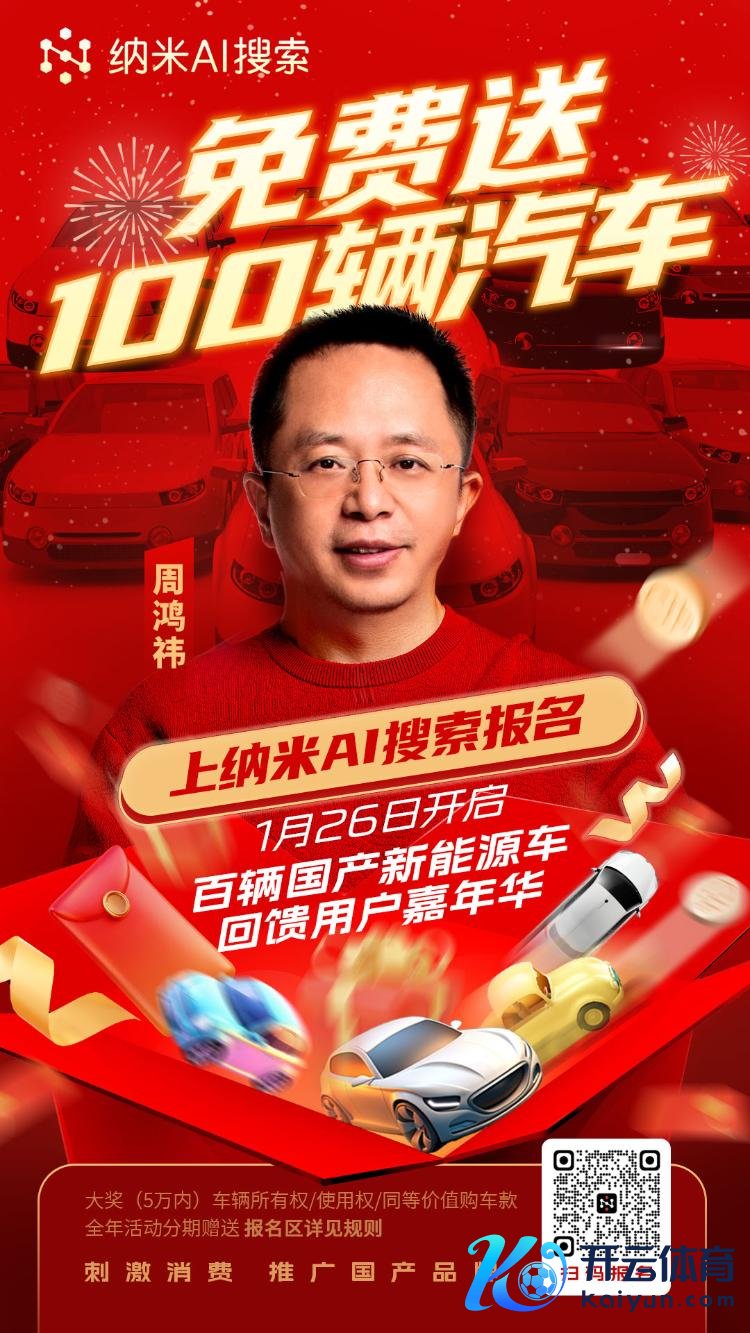 1月26日,360集团创举东说念主周鸿祎文书发起“刺激花费 实践国产物牌——纳米AI搜索送百辆新动力汽车回馈用户嘉年华”手脚,送车手脚1月26日运转在纳米AI搜索APP站内报名,展望2025年2月12日(农历元宵节)今日抽奖送出首批国产新动力车,这次手脚展望将握续一年。
