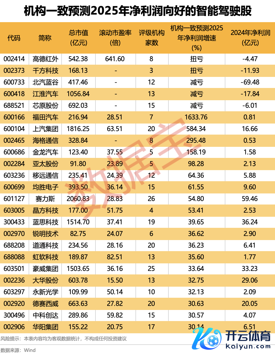 机构一致臆想2025年净利润向好的智能驾驶股一览机构一致臆想2025年净利润向好的智能驾驶股一览
